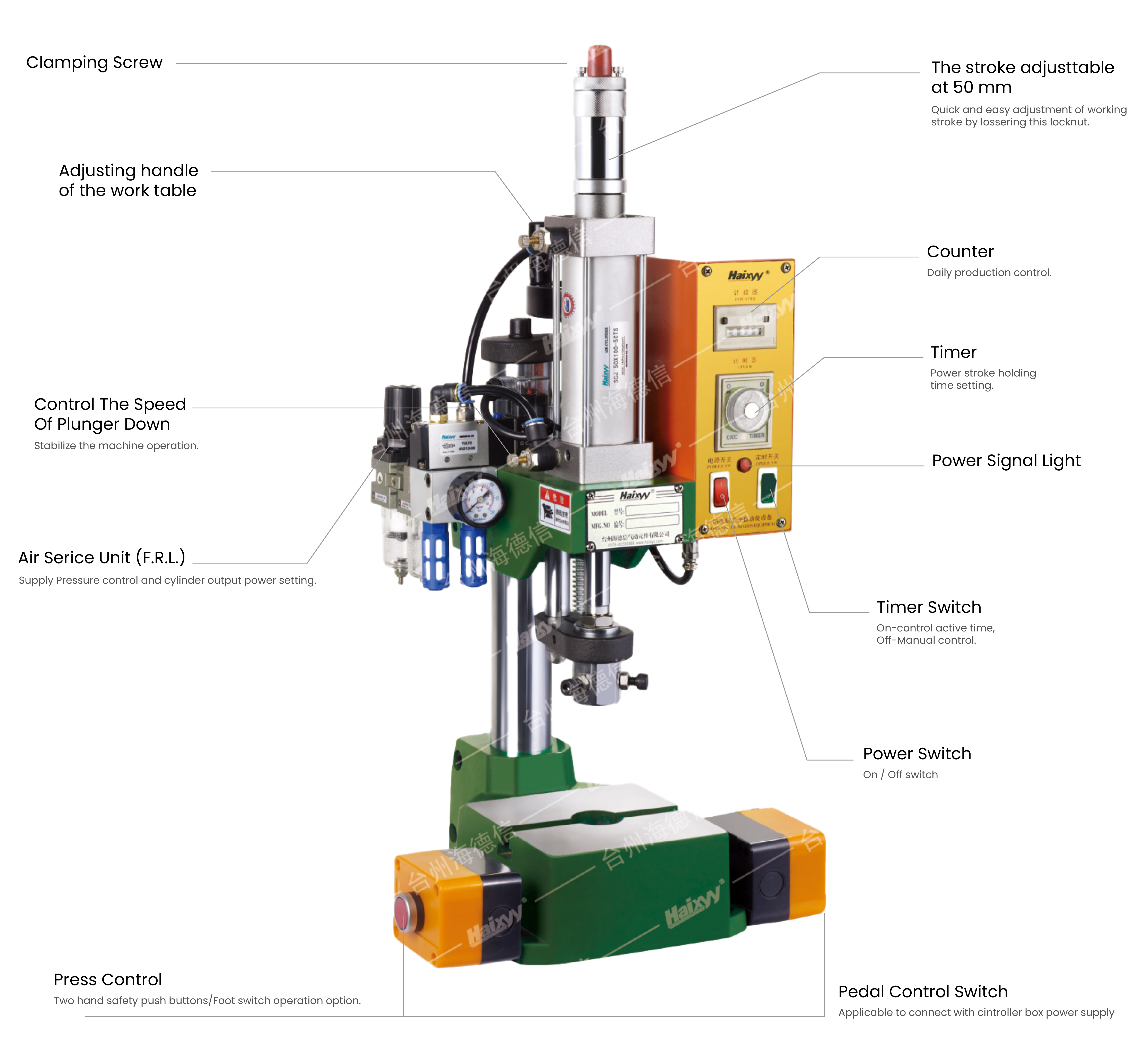 • Adjustable stroke cylinders, special strokes can be customized. Column height can also be customized.